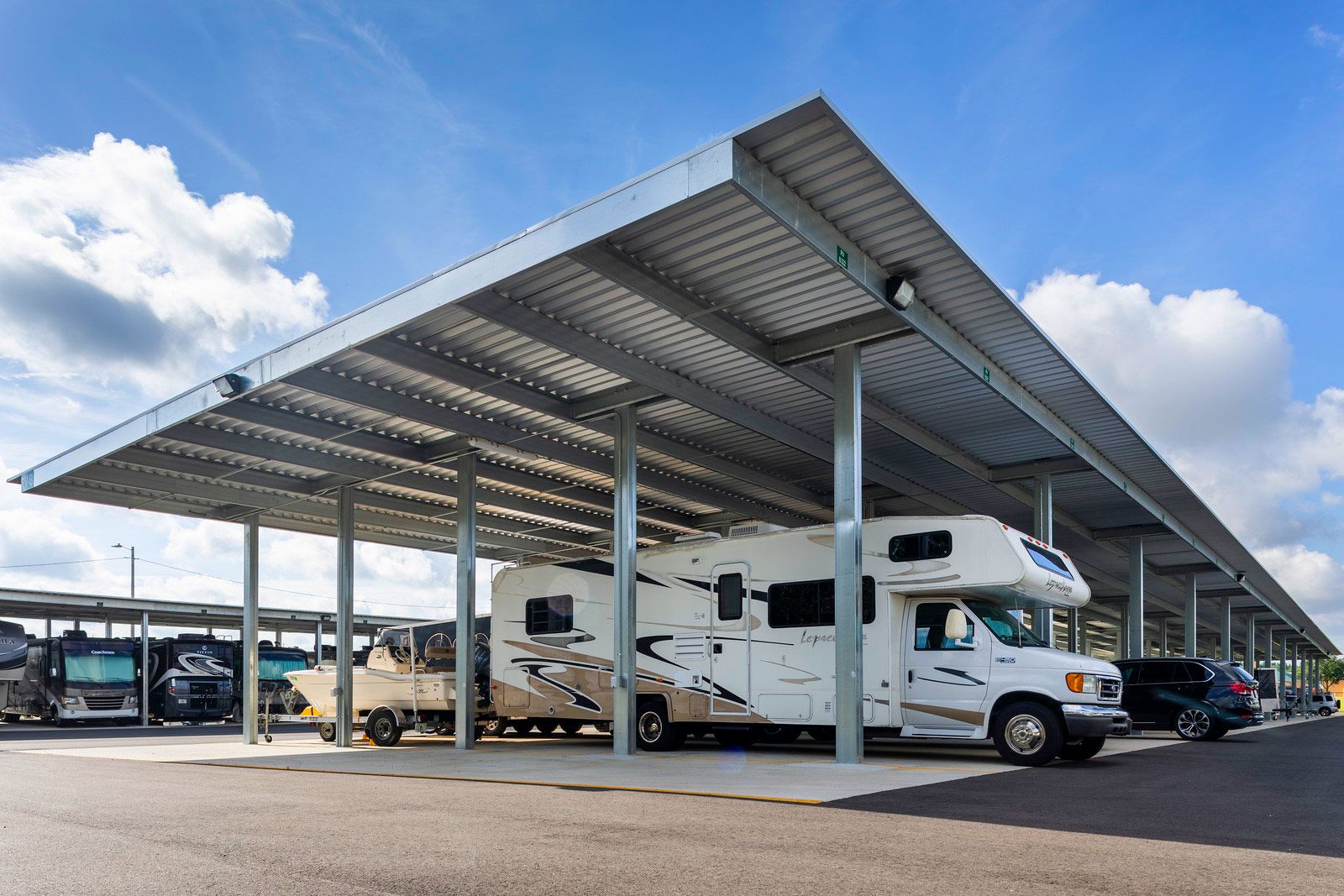 Self-storage facilities with outdoor vehicle spaces — Many traditional self-storage businesses (the kind with drive-up units for boxes and furniture) also rent outdoor parking spaces for vehicles. These are often basic: gravel or asphalt, perimeter fencing, shared gate codes. They can work for standard car storage but aren't specialized for vehicles.